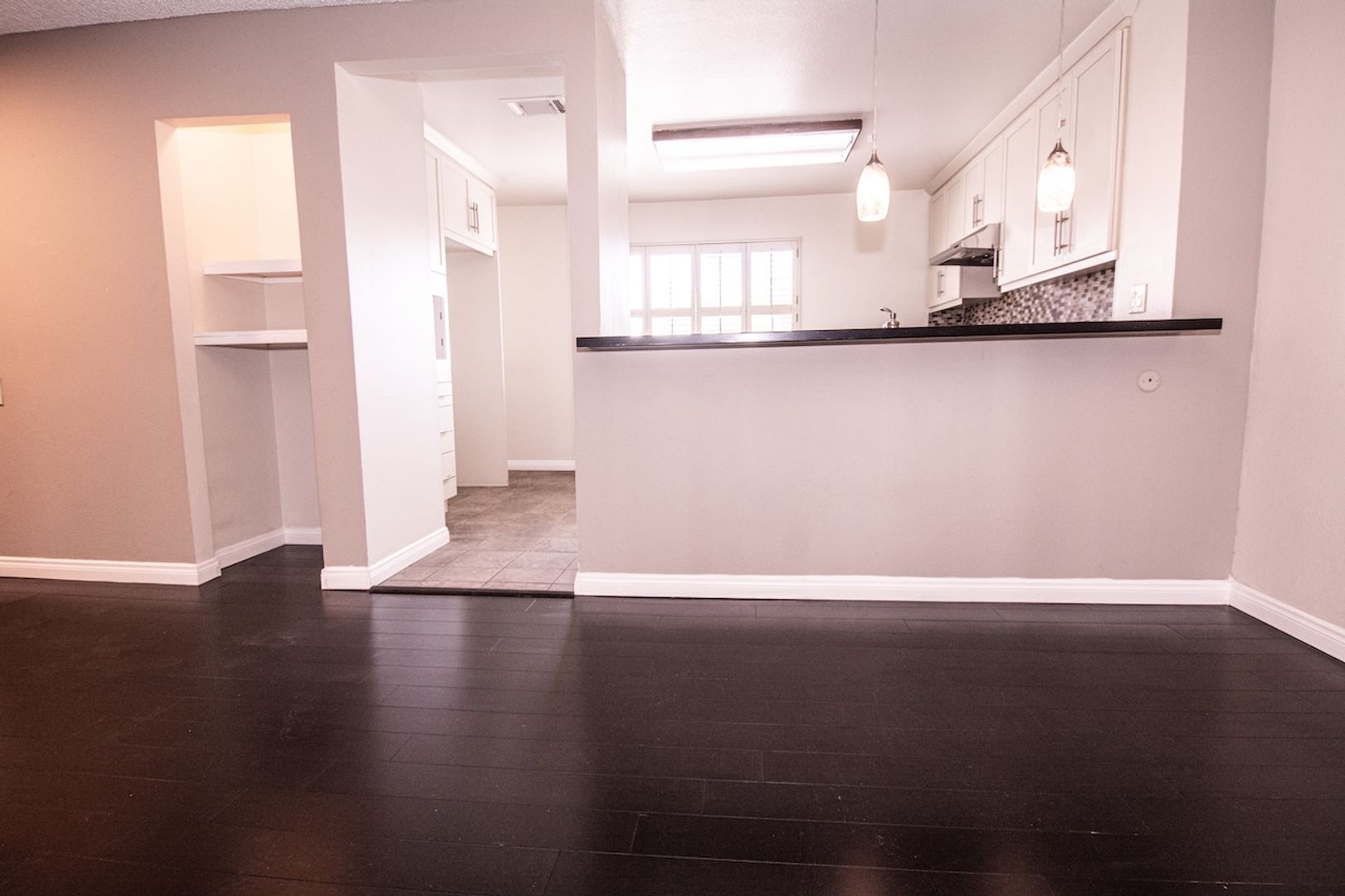 Throughout the unit, there are tasteful upgrades including fresh neutral paint and upgraded carpet. The space includes a designated area for a full-size washer and dryer. The dining area, overlooking the living room, creates a perfect ambiance for entertaining guests.