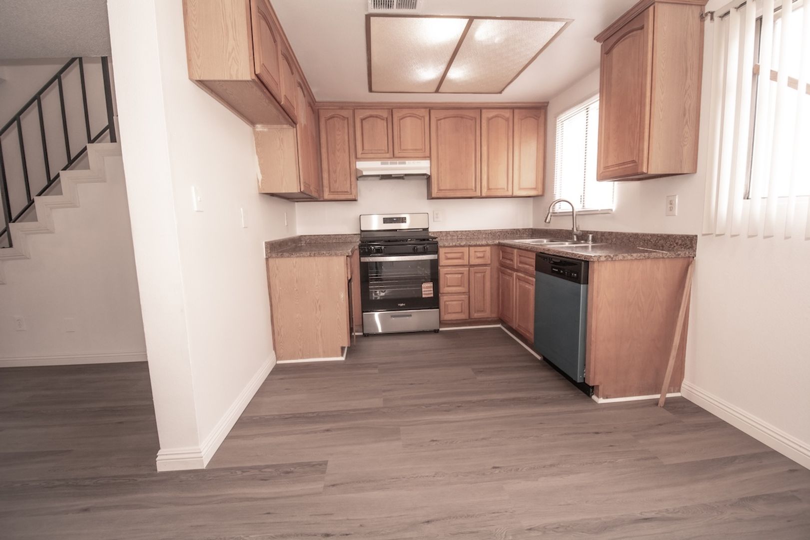 Spacious and well-maintained 2-bedroom, 1.25-bath townhome apartment located in a desirable Ontario community. This two-story unit features new laminate flooring throughout and fresh interior paint. The living room, kitchen, and powder bathroom are conveniently located on the main level, with both bedrooms situated upstairs for added privacy.